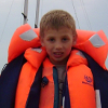 Wir leihen uns also eine Segeljolle. Tino, der Leiter der Kanubasis, gibt uns eine Einführung in die Jolle und wir legen zum ersten Mal alleine ab. Für Melanie und die Kinder ist es das erste Mal auf einem Segelboot überhaupt. Wir haben sehr viel Spaß dabei. Alles ist zunächst natürlich aufregend und neu. Melanie ist auch etwas ängstlich in Bezug auf die Sicherheit der Kinder, besonders da Lara und Pia noch nicht schwimmen können. Somit werden sie alle nicht nur mit Schwimmwesten ausgestattet, sondern auch noch mit Tampen hinten an den Schwimmwesten gesichert.